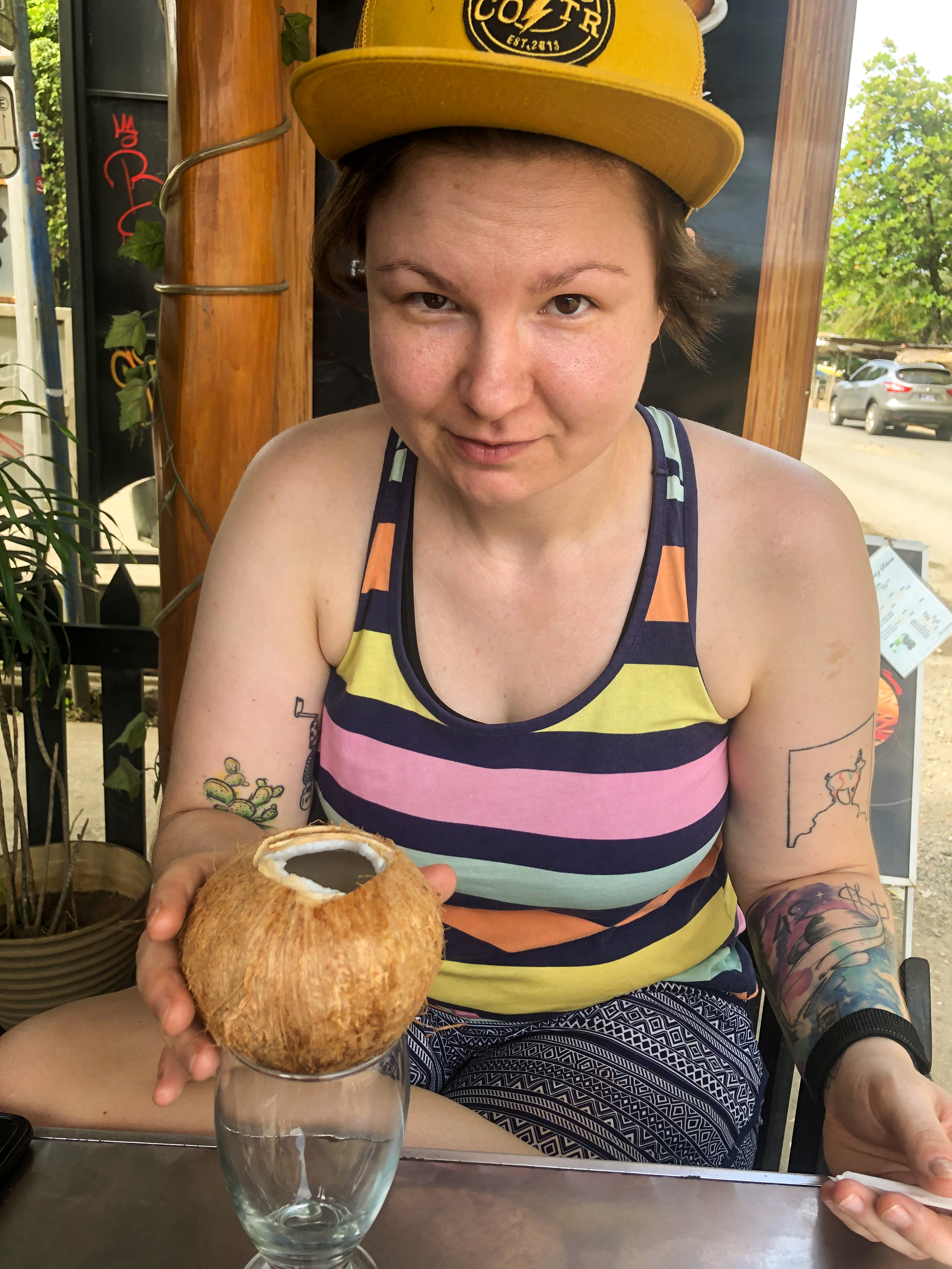 V jednom z velkých barů, kde zrovna probíhá neonová show, pracuje sympaťák Justin. Jako by z oka vypadl soutěžícím RuPaul’s Drag Race, nejspíš je z nové generace kostarických queens. „Hi, sweeties, what can I get ya?“ Pizza už bohužel došla, a tak si vystačíme s panamským rumem Cortez (dostaneme k němu limetku, kterou ho nakonec zakápneme, i když byla původně asi určená k zakousnutí) a potajmu sníme proteinovou tyčinku z kabelky. Pak jdeme spát do Airbnb Lazy Loft. Je nám vedro, a to větrák jede celou noc na plné obrátky.