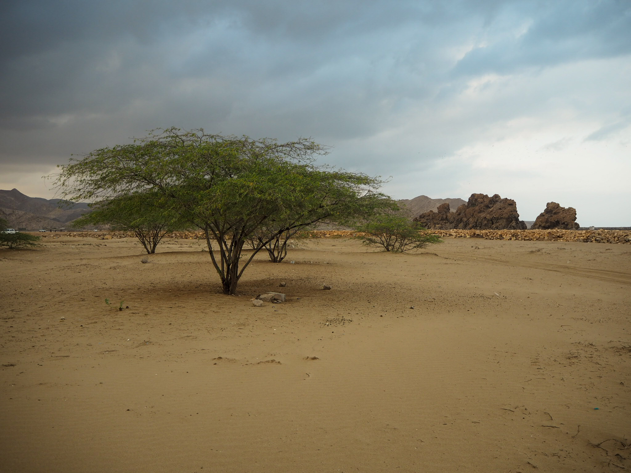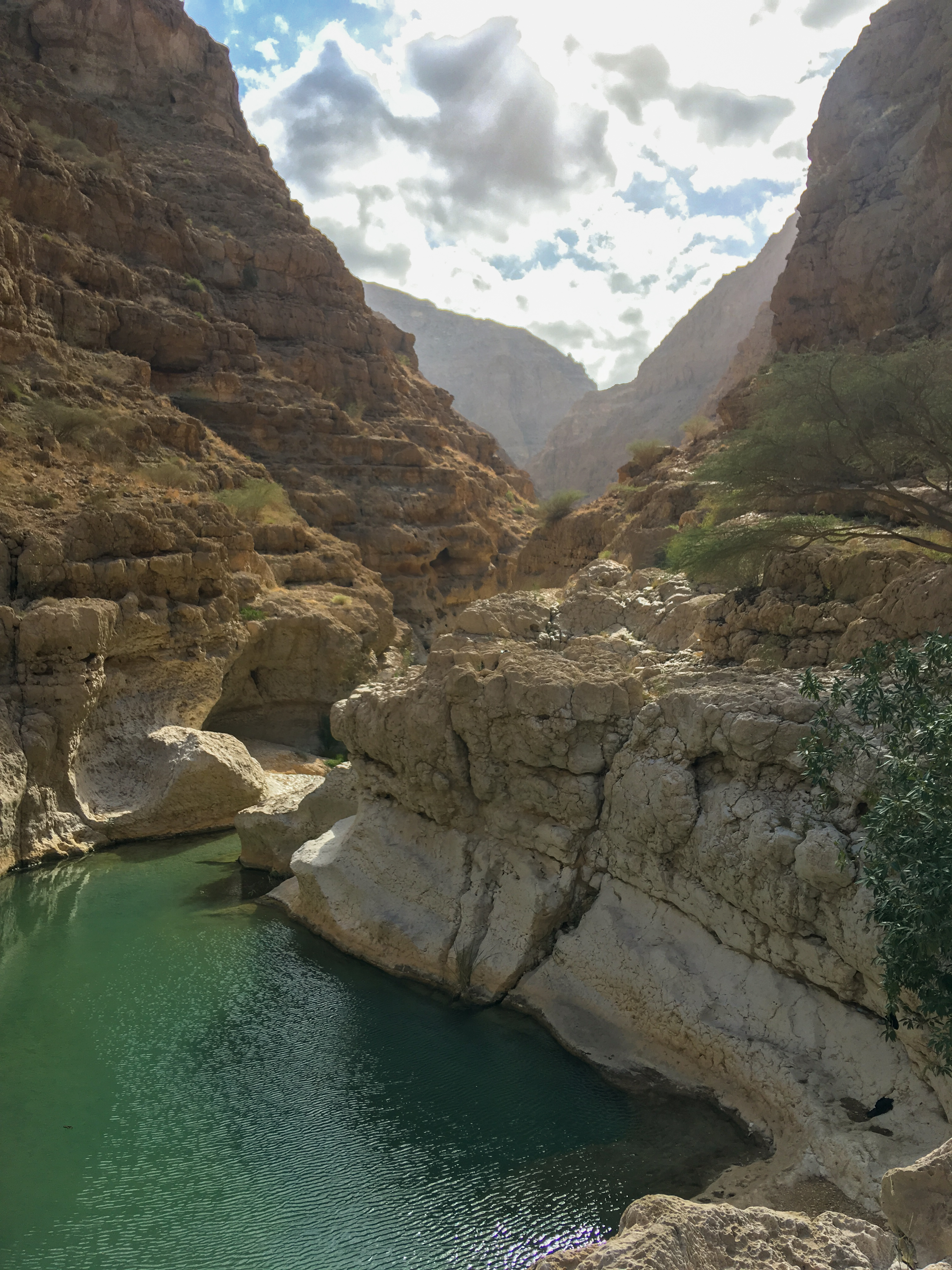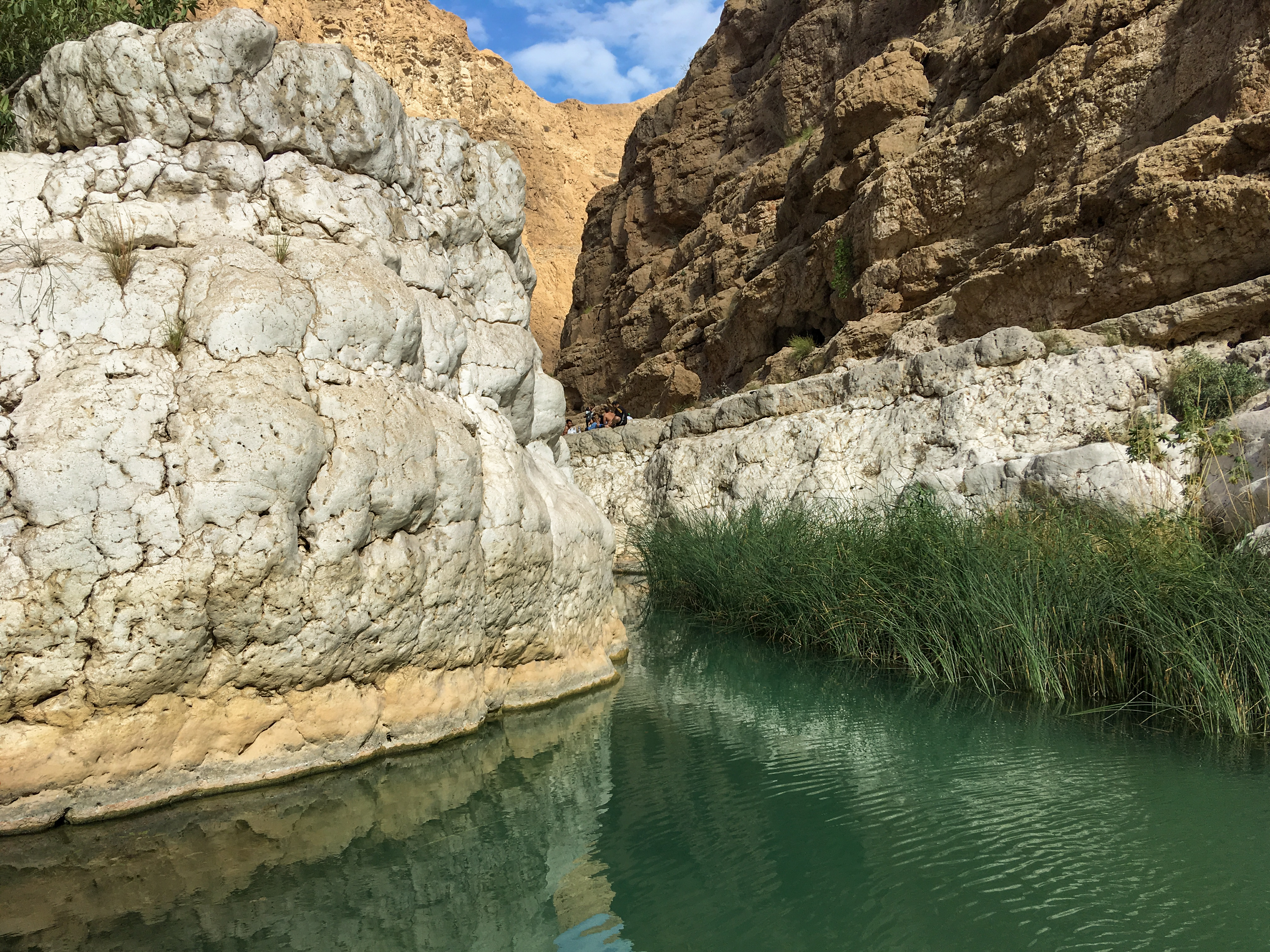3. den: vyrazit brzy – cesta na jih, po cestě: Dayqah Dam (přehrada, výhledy, zabere cca 30 min), Bimmah Sinkhole (Ďáblova díra, parkuje se u ní, zabere cca 20 min), Wadi Shab – 3–4 km trek, pak 3 jezírka (u prvního nechat věci – nekrade se; mezi nimi kamínky, musí se projít pěšky, proto raději plavat v sandálích nebo botách do vody, poslední jezírko je v jeskyni s vodopádem), zabere cca 3 h i s koupáním, 1 OMR/os. za lodičku = převozník na začátku a konci treku, pláž Tiwi, Súr (maják, možnost navštívit muzeum výroby typických starobylých dřevěných lodí – tam jsme nakonec nešli)