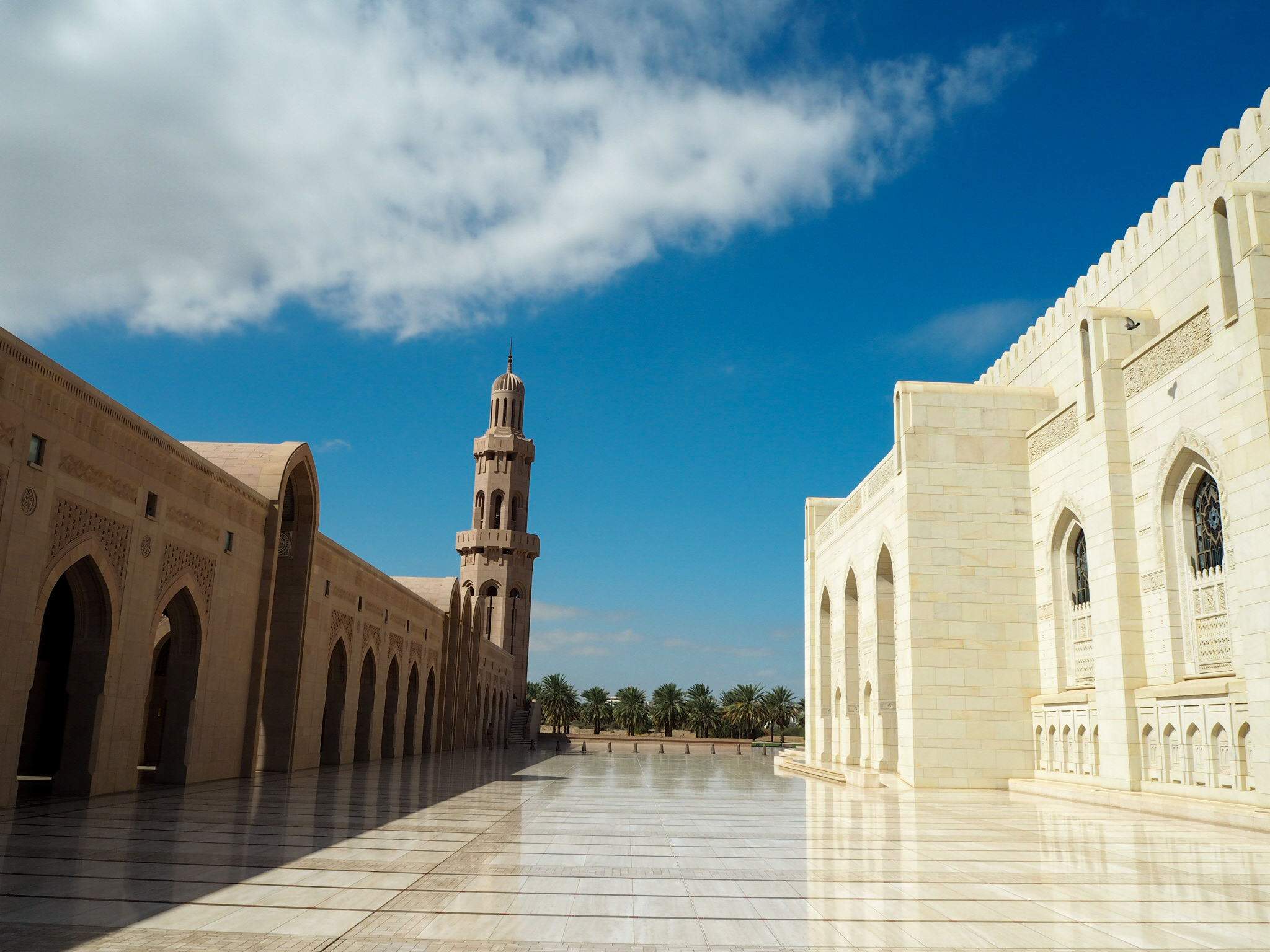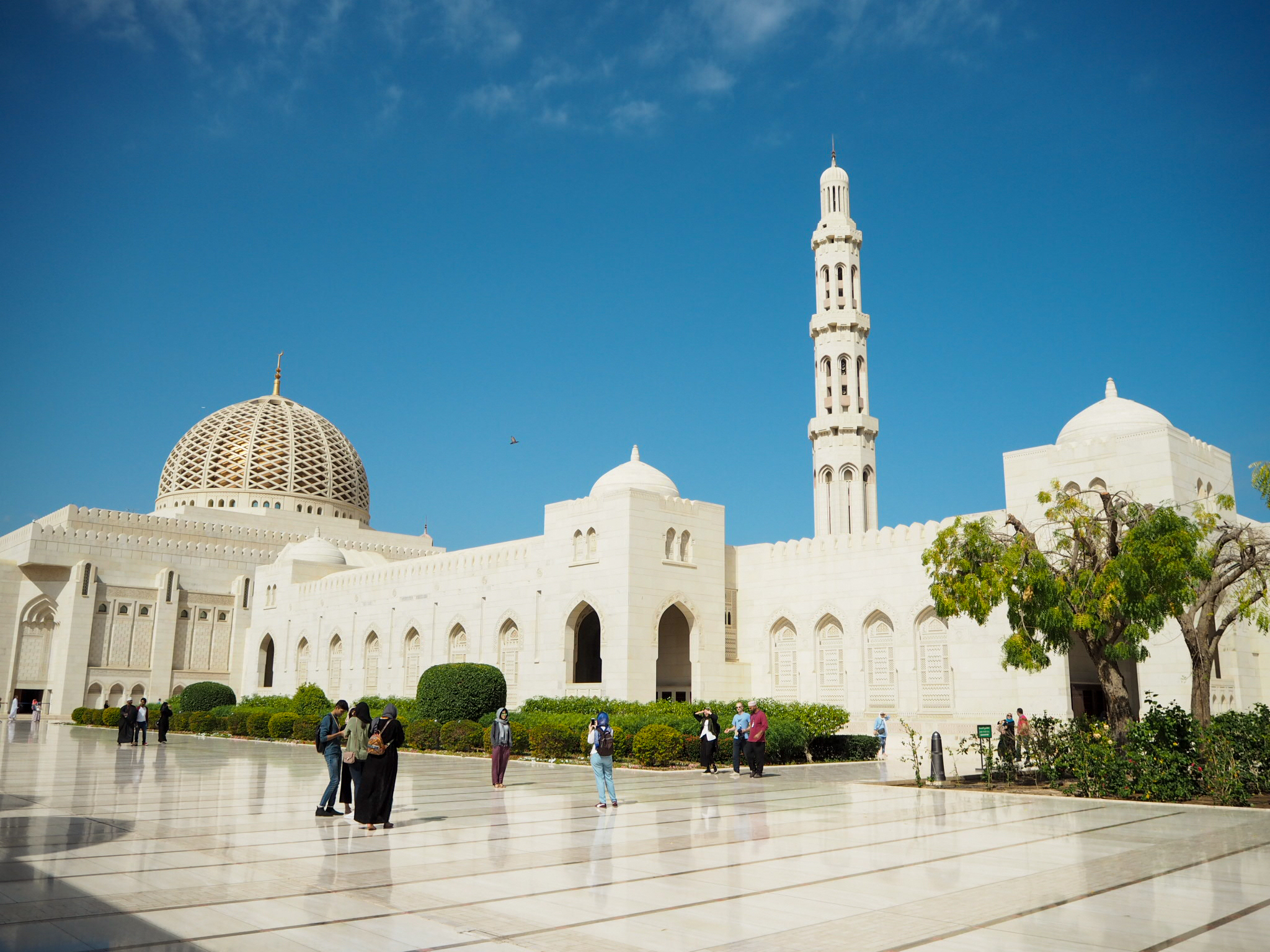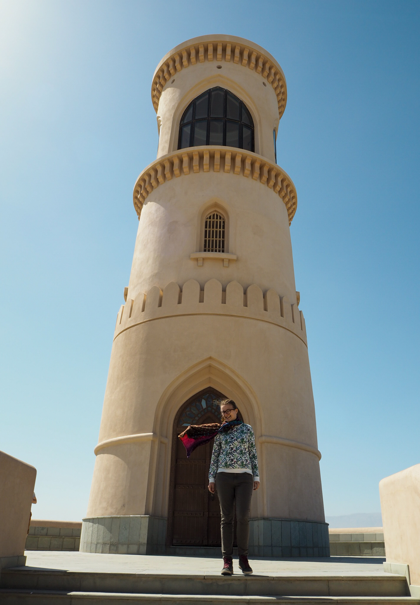 2. den: Velká mešita sultána Kábuse (zabere cca 1 h, otevřeno NE–ČT 8–11:00, vstup zdarma, 2. největší lustr na světě, 2. největší koberec světa; hledat jako „Grand Mosque…“, jinak navádí k jiné mešitě, žena musí být zahalená včetně šátku přes hlavu, příp. tam vhodný oděv i půjčují), Keif café (bar s vodními dýmkami, dobré jídlo, přímo u pouště, s výhledem na město), Al Riyam (věž, co vypadá jako velká nádoba na kadidlo nebo UFO), pláž Yiti (úžasná krajina cestou, „ztracená vesnička“ s místními, krásná skaliska na pobřeží)