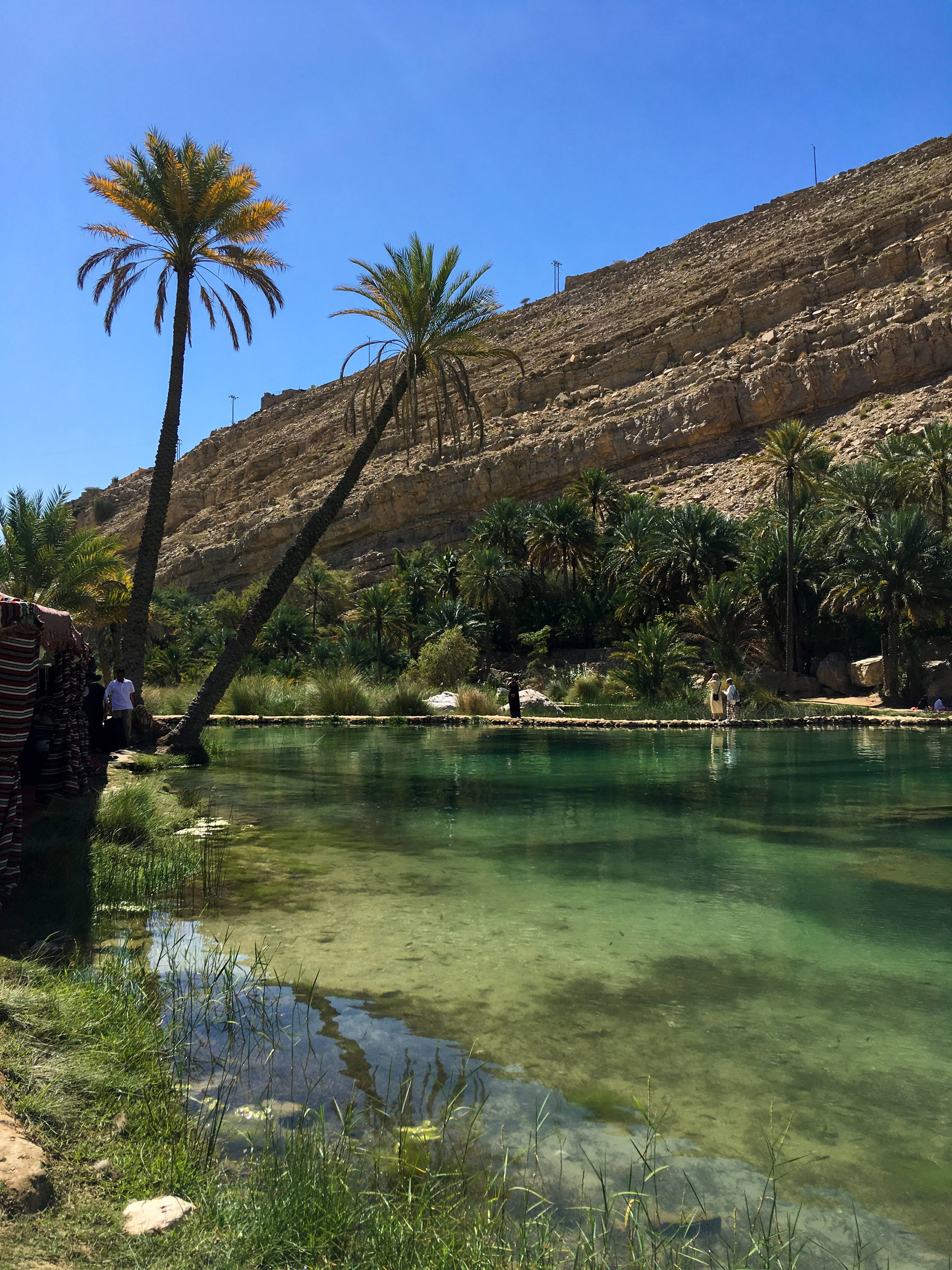 5. den: Wadi Bani Khalid (na Google mapách hledat s dovětkem „parking“, jinak posílá špatně; zabere max. 2 h – civilizovanější koupání než Wadi Shab, ve vodě jsou rybičky, co ožírají starou kůži :D, dá se jít i dál k jeskyni), Ibra (staré město s pevností, kterou jsme ale neobjevili a místní nedokázali poradit :D, tak jsme si dali jen jídlo…), Nizwa