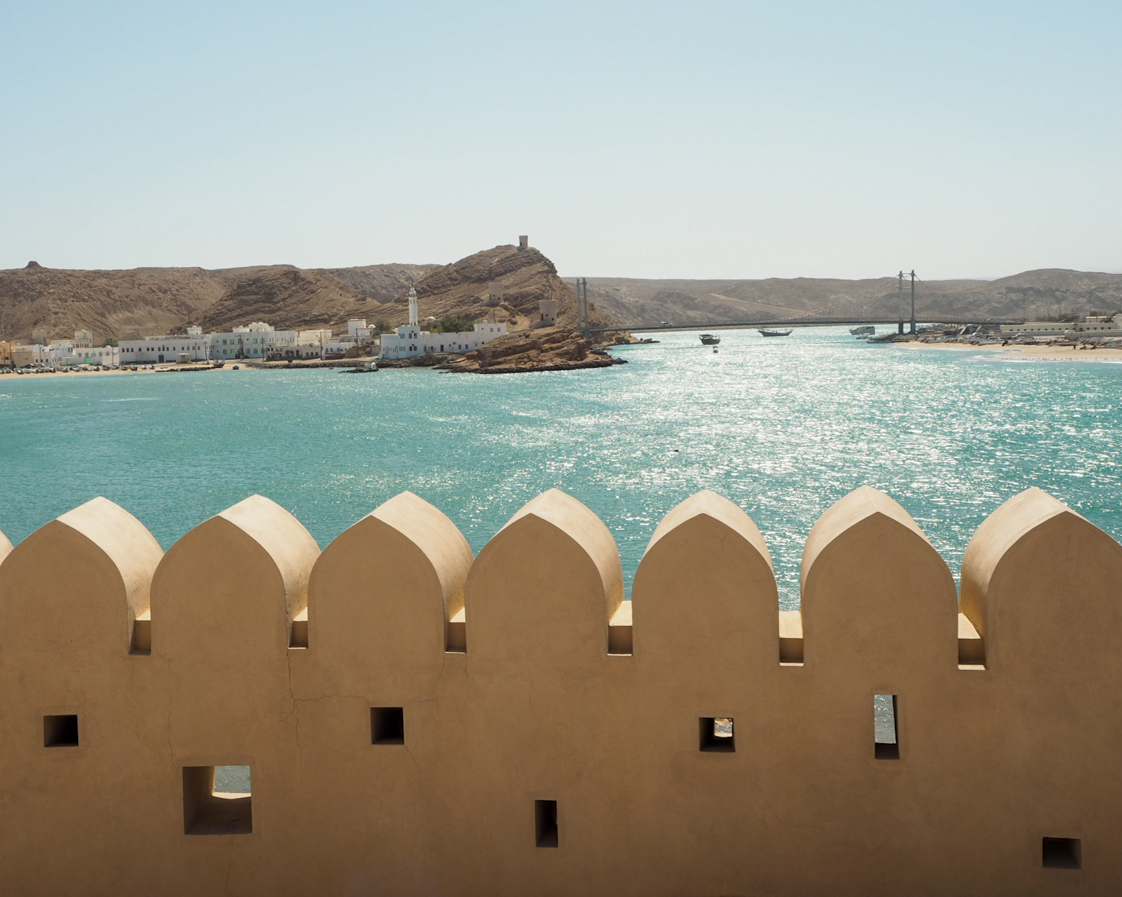 7. den: Marina Bandar al Rowdha (přístav, odsud půldenní výlet na pozorování delfínů a šnorchlování), Al Alam (královský palác), Al Jalali a Al Mirani (portugalské pevnosti, stačily nám z dálky od Al Alam, ale dá se k nim i blíže), znovu Mutrah Suq (poslední suvenýry), Al Keif (poslední shawarma), vrácení auta (přímo na letišti)