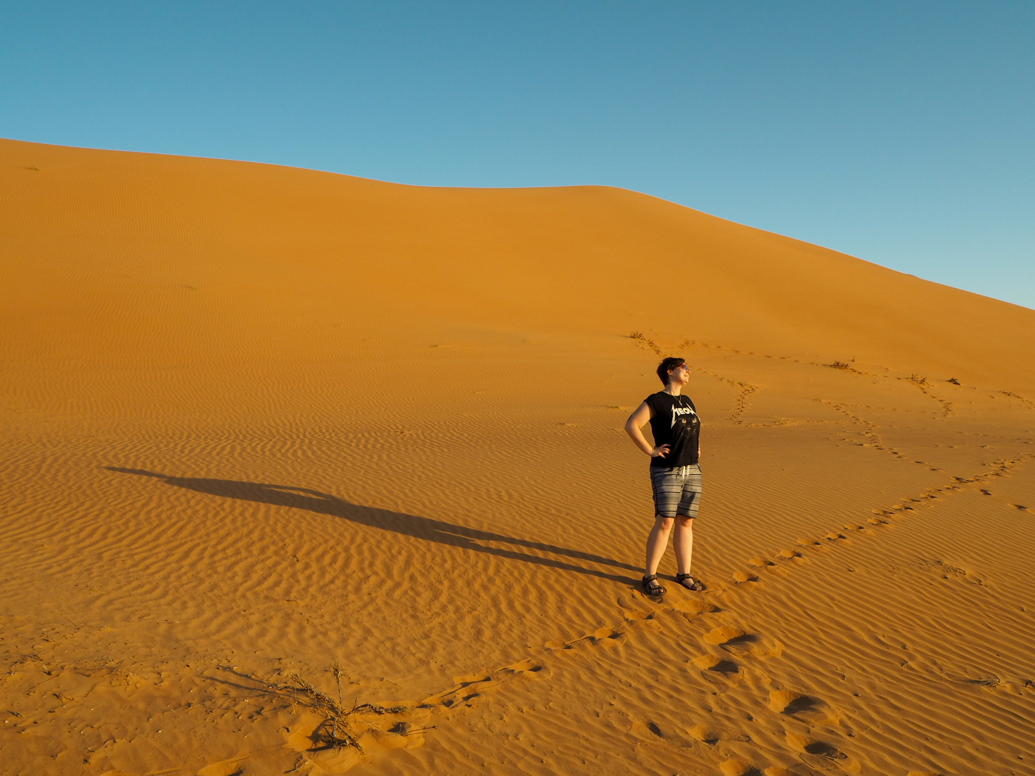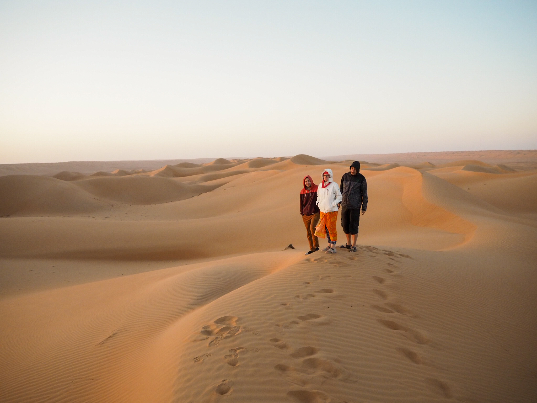 5. noc na poušti: Wahiba Bedouin Rustic Camp (nejlepší <3, autentický zážitek, západ slunce, zkoušení oděvů beduínů a učení tradičních tanců, večer u táboráku s vyprávěním o beduínském životě a velbloudech, východ slunce, krmení velbloudů a dojení koz + dá se připlatit i jízda na velbloudovi, ale nic nenutí)
