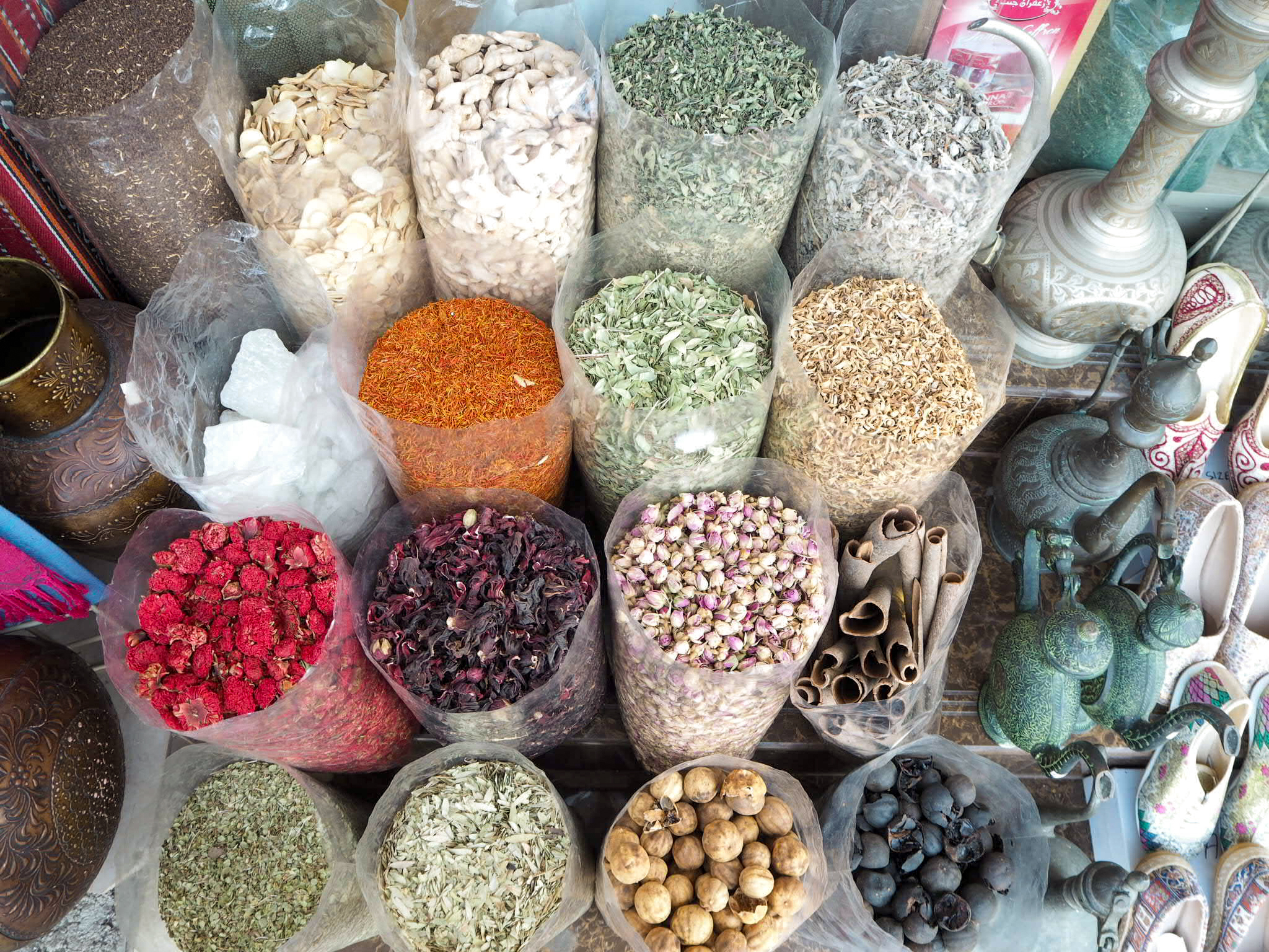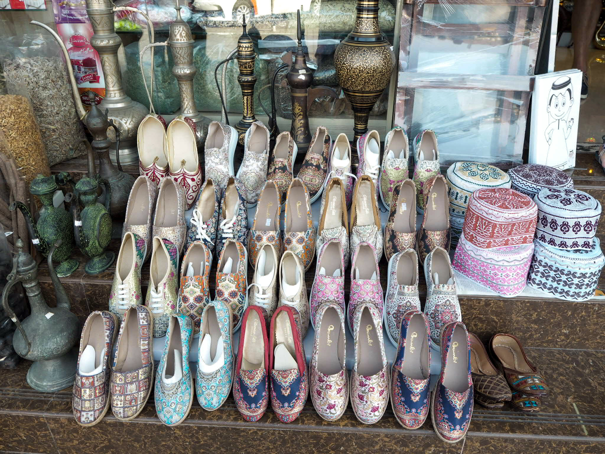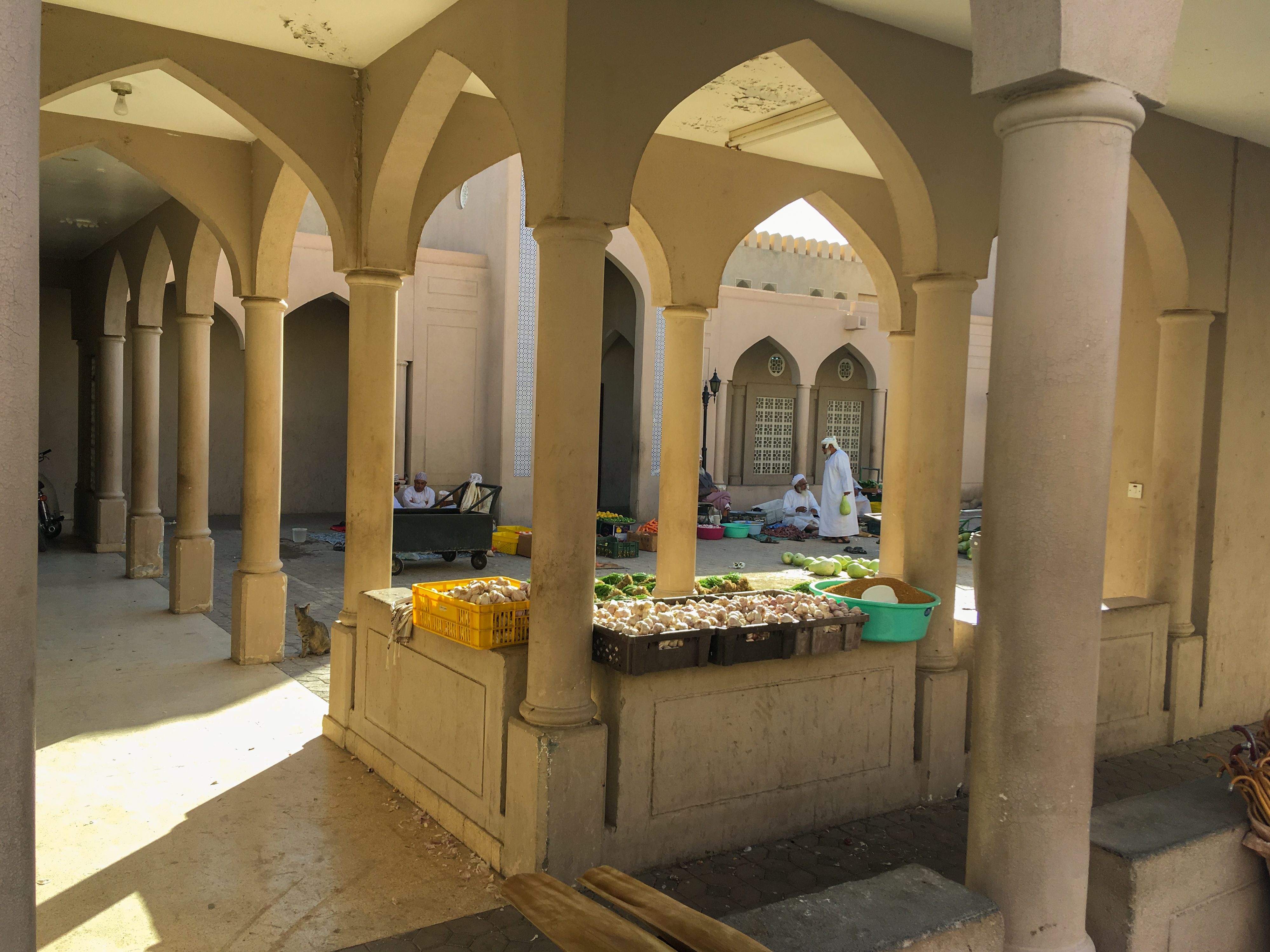 6. den: Nizwa – trhy: kozí suq – bývá unikátním zážitkem, ale je jen v pátek ráno, fruit & vegetable suq – nejtradičnější halwa, datlový suq – datle ve všech podobách, vyplatí se domů i jako suvenýry), pevnost (dovnitř jsme nešli, vstup asi 7 OMR), Bahla – hrad v UNESCO, Bald Sayt (terasovité zahrady) – pozor, cesta z Bahly je pro čtyřkolku (ve 2 000 m a po nezpevněné cestě – nakonec jsme se obraceli a do Bald Saytu nepodívali, ale výhled v horách po cestě, kde byla ještě asfaltka, byl nádherný – a je odtamtud vidět i Bald Sayt z výšky), Jebel Shams („Grand Canyon“, ale je tam potřeba mít čtyřkolku – nakonec jsme nejeli), návrat do Muscatu