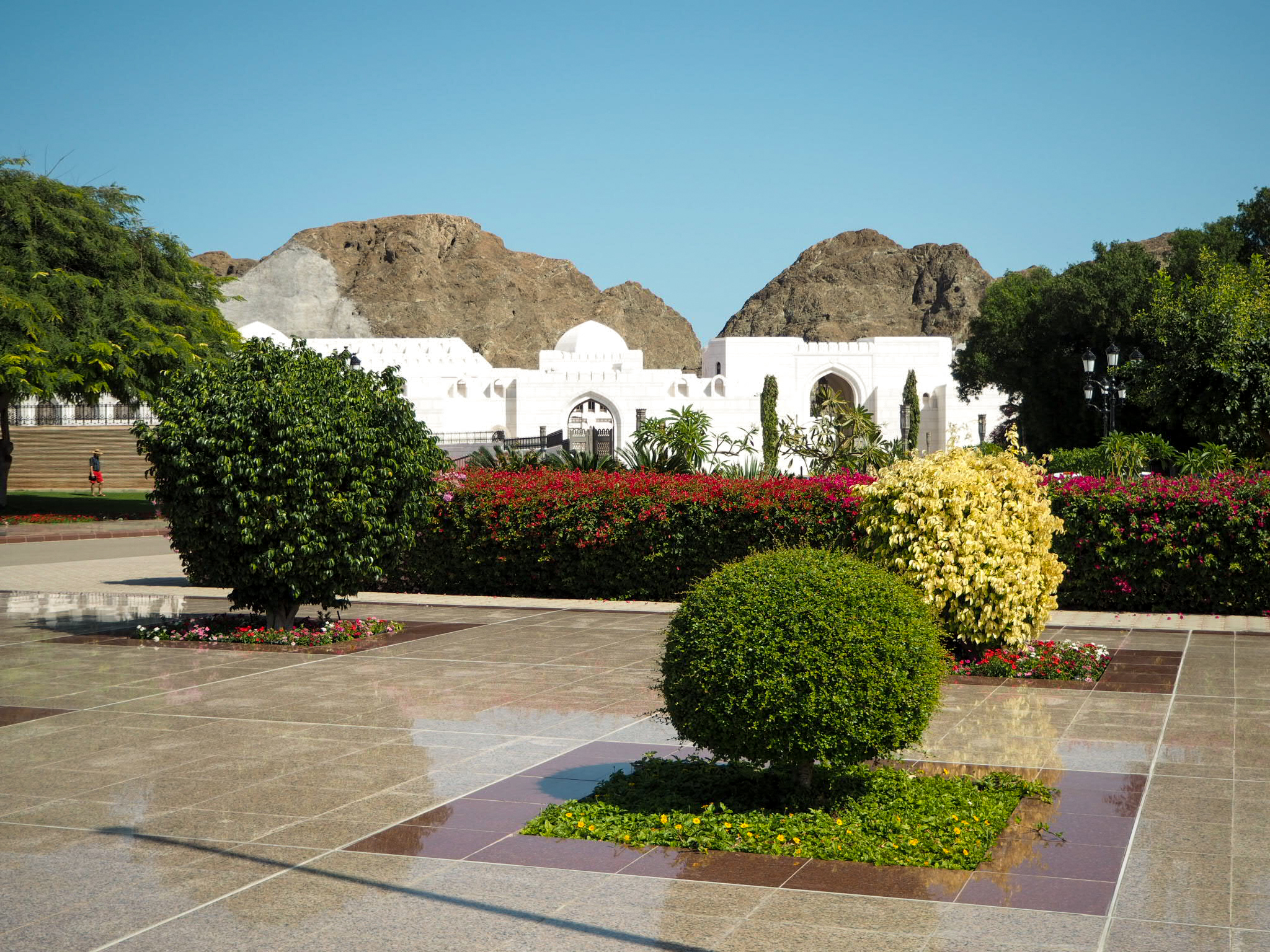 1. den: vyměnit dolary v obchodním centru (Muscat Grand Mall – směnárna, příp. supermarket pro nákup prvních potravin + mají tam i český obchod s trdelníky :D), Royal Opera House (jediná budova Opery na Blízkém Východě, vstup 3 OMR – prohlídka s průvodcem cca 30 min), Mutrah Fort (pevnost s krásným výhledem, platí se parkovné – nebo nechat auto pod kopcem, vstup do pevnosti zdarma), pláž Qurum (my ji měli kousek od hotelu, vede kolem ní Love Street, oblíbená promenáda Ománců), Mutrah Suq (trh – jediný, kde byli „naháněči“, ale měli tam nejlepší shawarmu, otevřeno 8–11:00, pak 16–22:00), promenáda po nábřeží starého Muscatu v Mutrah