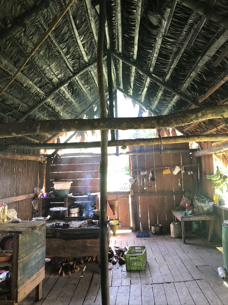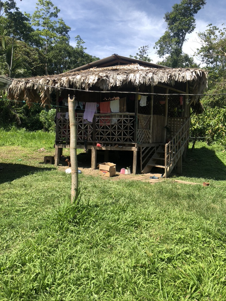 Pak už nás Jorge vede po mostě mezi obřími bambusy do indiánské vesnice. Vypráví nám, že elektřinu sem zavedli až před 7 lety. Internet asi před rokem. Život místních se pomalu mění, ale pořád je naprosto jednoduchý. Nemáme se prý bát. Nebude to turistický zážitek. Přivítá nás rodina, ve které budeme trávit celý den jen s dalšími přáteli.