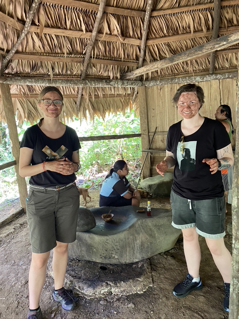 Nejprve o čokoládě: Luis nám dává ochutnat původní plod, ze kterého se získává. Dužina kakaových bobů je extrémně chutná, připomíná liči, mango a tropický banán dohromady. Postupně objevujeme kouzlo ruční výroby čokolády. Luisova malá dcera umí s kamenem lisujícím čokoládu mnohem lépe než většina z nás. Kdo si s tím poradí, může se prý vdávat. Já jsem přímo marná. Hmm, tak snad příště. Dostáváme od Luise požehnání a na tvář čokoládový peeling. Zkoušíme různé příchutě téhle čisté verze oblíbené pochoutky a také horký kakaový nápoj, který BriBri a okolní kmeny považují za posvátný.