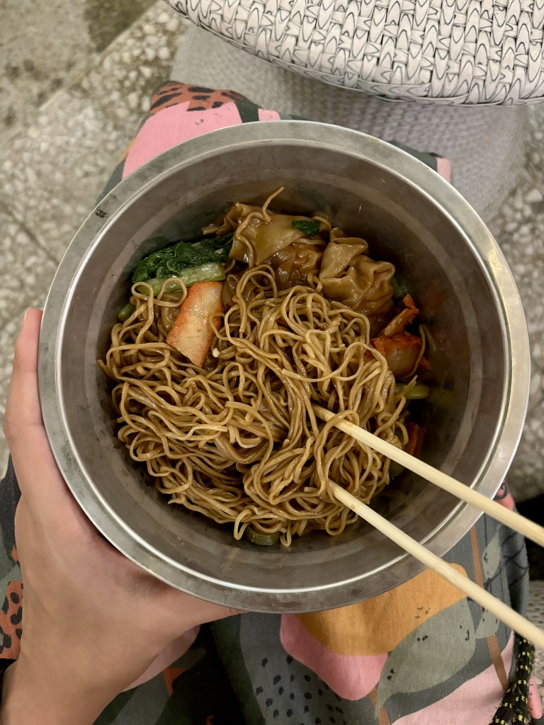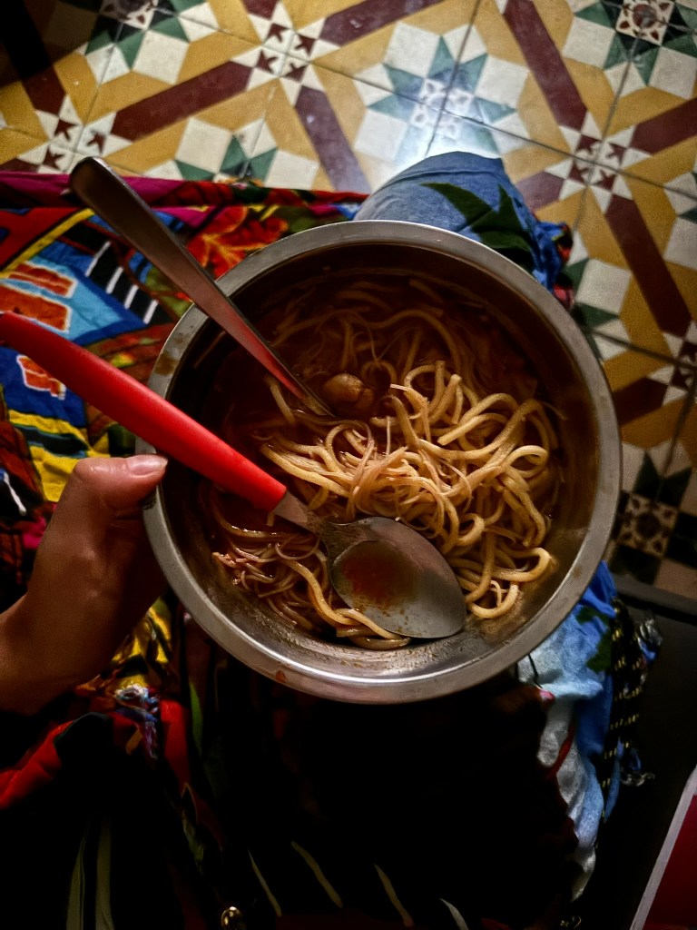 Tuto specialitu jsme si objednaly jako rozvoz do hotelu hned první den. Polévka přišla v plastovém pytlíku a my jsme si musely na recepci vyprosit obří mísy, abychom ji měly jak sníst. Byla velkolepá. Smyslový zážitek chuti byl posílen i tím, že jsme jídlo jedly potmě vedle spícího batolete.