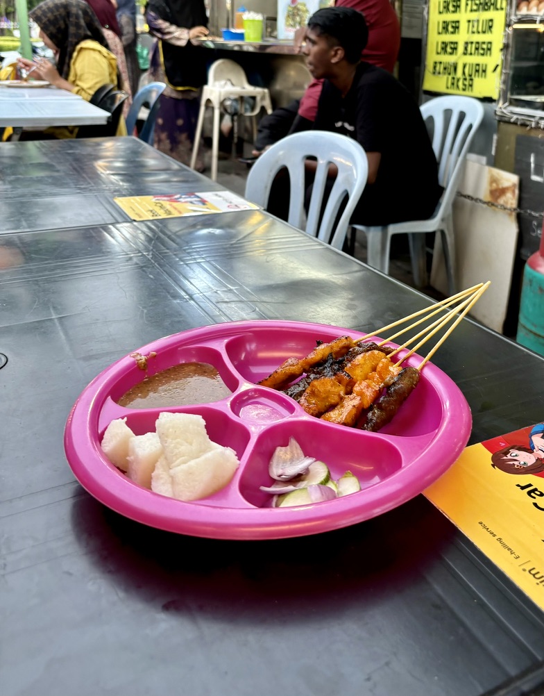 Chicken satay znáte možná z jiných částí Asie. Špízy s arašídovou omáčkou jsou největší klasika, kterou si oblíbilo hlavně naše dítě a mohlo jich spořádat fakt hodně, zvlášť když alternativou byla jen pálivá jídla. Seženete je i na hawker marketech.