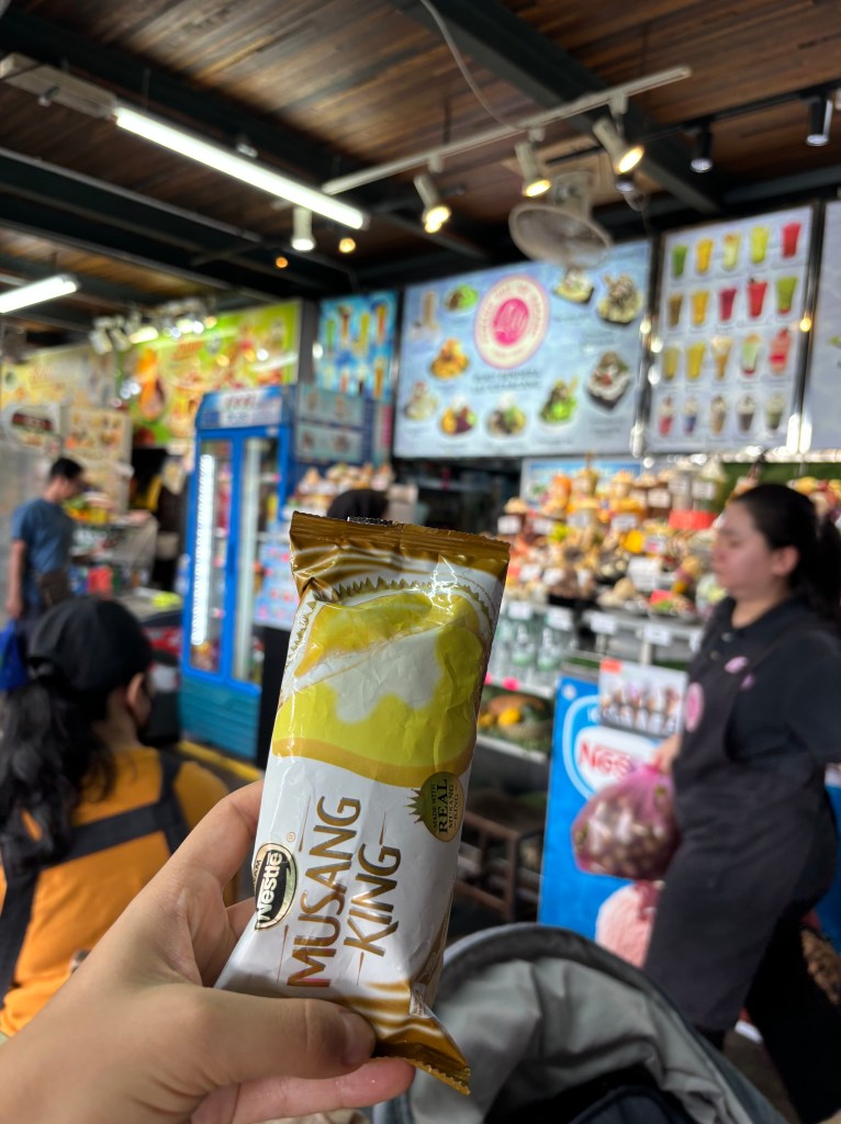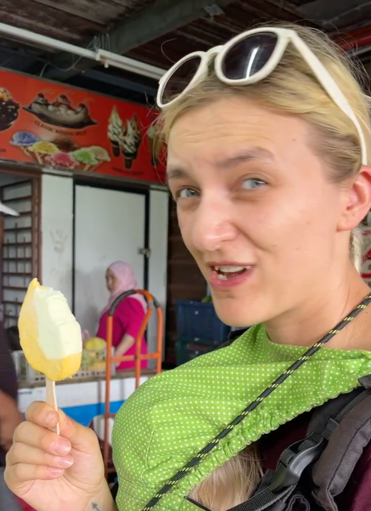 My už jsme s ním měly tu čest v Thajsku, a proto jsme o opakování v Malajsii nijak moc neprahly. Jenže co by to bylo za návštěvu vyhlášené durianové destinace bez ochutnávky? Troufly jsme si nakonec aspoň na nanuk! Zapáchal taky, ale chuť byla méně výrazná, víc zpracovaná, a ušlo to. Místní po nás pokukovali, jak se budeme tvářit. Myslím, že jsme jim daly závdavek zábavy i svými ksichtíky.